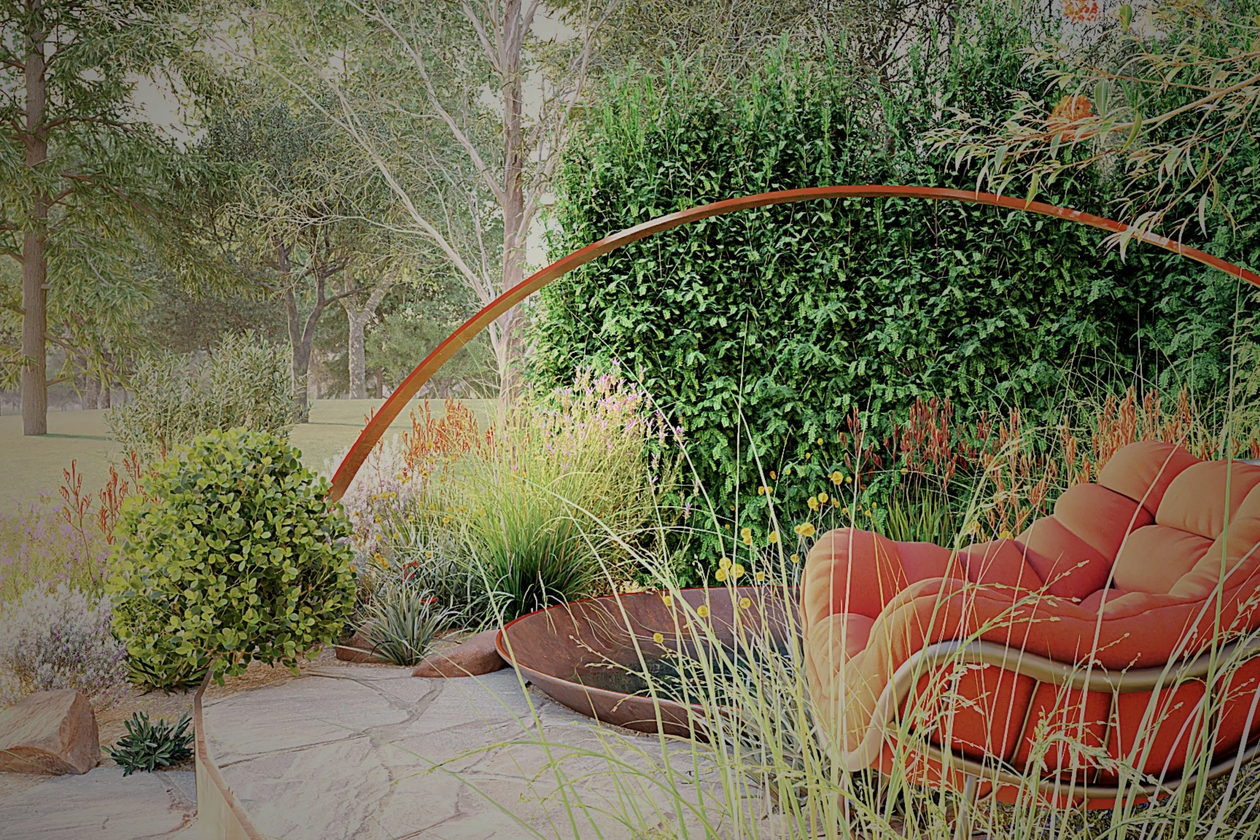 The planting envelopes every corner, with hardy natives chosen not only for texture and movement but also to attract pollinators and birdlife. These species celebrate resilience, thriving with minimal care while filling the space with life and subtle seasonal shifts. A backdrop of native Syzygium hedging provides structure and enclosure, while a feature tree positioned to the right creates a shaded place to sit and connect with the garden. Gently varied levels throughout the design add depth and a sense of grandeur, encouraging visitors to slow down and explore the space from multiple viewpoints.